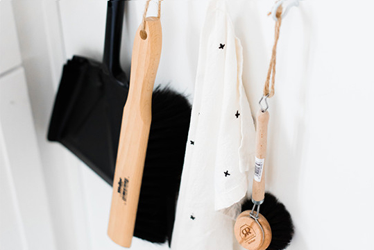 - Benutztes Geschirr und Töpfe sind gespült und in die Schränke geräumt